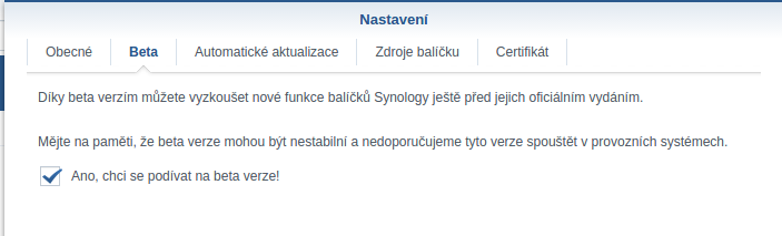 synology nas beta balicky