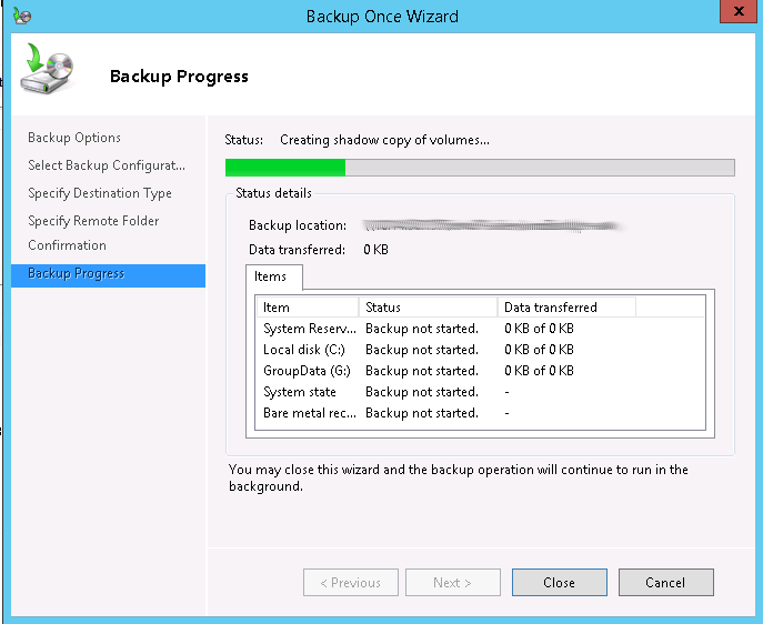 windows server backup configration
